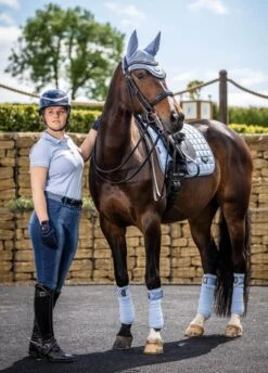 Now with our Super Soft Suede Binding & New PU Leather girth protection area, this beautiful suede Dressage square sets new standards in style & comfort. Now established as the iconic LeMieux look when combined with matching polo bandages and fly hoods there are colours to suit most horses and tastes. Designed to fit a wide range of dressage saddles with its high wither and elasticated D-Ring tabs . The luxurious suede top side with soft suede binding is complimented by a new super soft Bamboo lining to absorb & control sweat under the saddle and are beautifully comfortable and secure – minimising friction. There are several attractive suede colours with more new ones being added seasonally and a selection of new Small/Med pads in the range to accommodate smaller saddlesConsider matching your Dressage pad with a Loire Fly Hood & Polo Bandages in the same colourway.