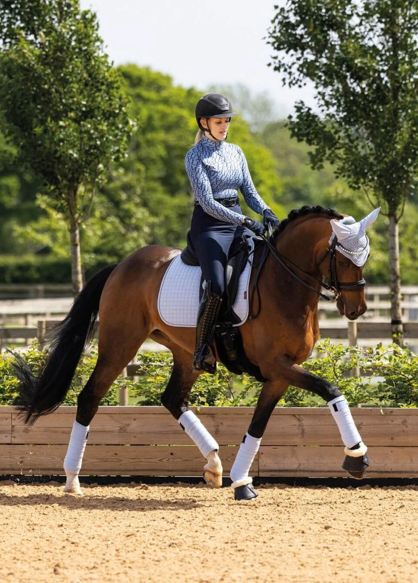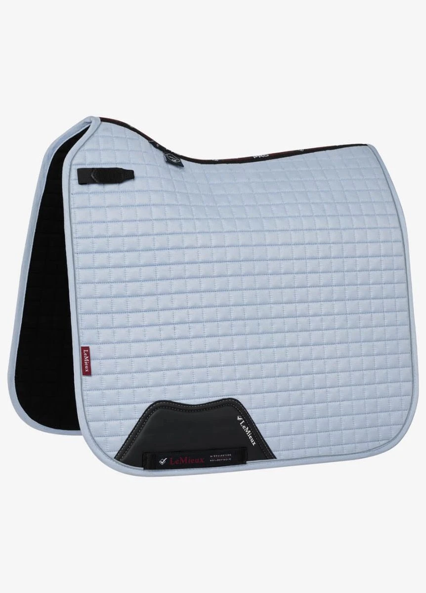 Now with new contrast piping detail and a PU leather girth protection area, the classic Dressage Saddle Pad from LeMieux is designed to fit a wide range of dressage saddles.