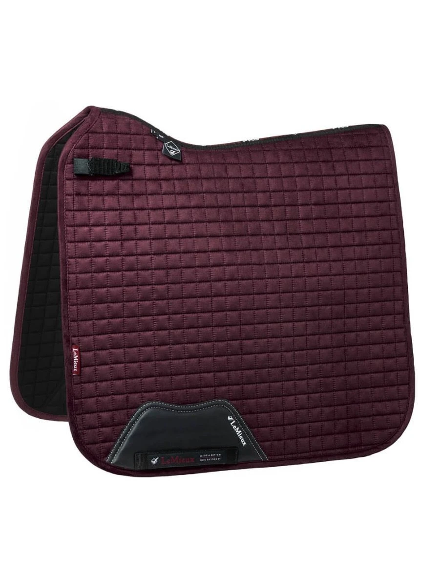 Now with our Super Soft Suede Binding & New PU Leather girth protection area, this beautiful suede Dressage square sets new standards in style & comfort. Now established as the iconic LeMieux look when combined with matching polo bandages and fly hoods there are colours to suit most horses and tastes. Designed to fit a wide range of dressage saddles with its high wither and elasticated D-Ring tabs . The luxurious suede top side with soft suede binding is complimented by a new super soft Bamboo lining to absorb & control sweat under the saddle and are beautifully comfortable and secure – minimising friction.